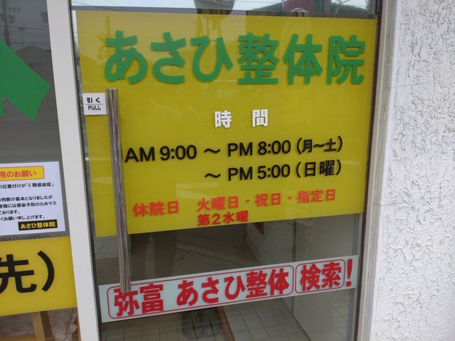 弥富駅から徒歩圏内にあるあさひ整体院です。 長くある整体院なので地元の皆さんで混んでいることも多いです。 受付の方もとても気さくで初めての通院でもとても安心できます。