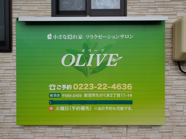 「整体ネット」では、宮城県岩沼市にある「OLIVE整体エステサロン」についてご紹介します。施設の所在地、交通アクセスはもちろん、営業時間、施術内容、施術にかかる料金といった施設情報を多数掲載。また、実際に来院されたご利用者様から寄せられた口コミ、投稿写真、投稿動画をご覧頂くことができるため、事前に施設の雰囲気を知ることもできます。そのほかにも、周辺施設情報、近くの賃貸物件情報も掲載中。OLIVE整体エステサロンの情報を知りたいときにご利用いただけます。