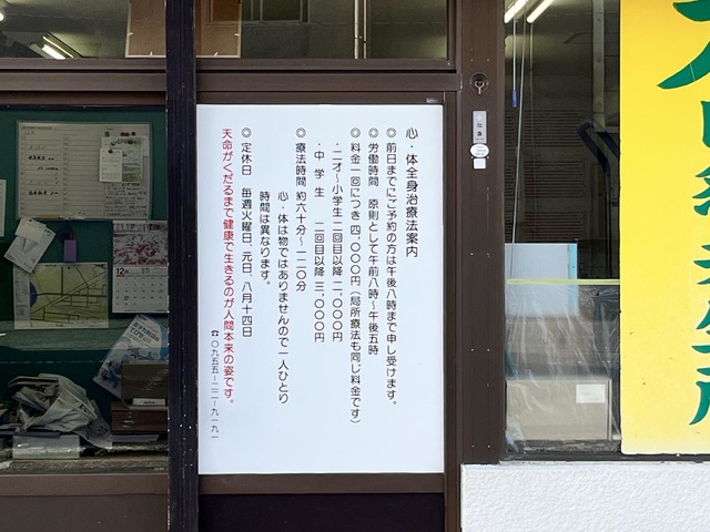 佐賀県伊万里市蓮池町にある整体院です。 入口の窓に「感謝」という文字が大きく飾ってあるのが特徴です。 施術は丁寧で、安心してお願いできます。 施術後もスッキリして痛みがかるくなりました。